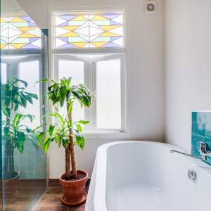 - Ramen aan de voorzijde woonkamer zijn in 2018 vervangen voor dubbelglas (HR++). Glas- in- lood ramen zijn voorzien van een extra glasplaat