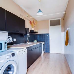 Ruime hal met grote bergkast en meterkast. Toegang tot de keuken met aansluitingen voor wasmachine. De ruime woonkamer heeft een deur naar het zonnige balkon en is voorzien van grote ramen, waardoor er veel lichtinval is. De woning beschikt over voldoende kastruimte. Ook de slaapkamers (drie) hebben grote ramen. De badkamer is voorzien van een wastafel en een douche.