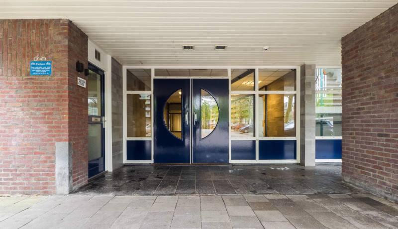 Op de begane grond is de gemeenschappelijke entree met intercominstallatie. Via een afgesloten deur is er toegang tot de hal met een drietal liften. Aan deze hal liggen ook 4 compartimenten waarin zich de bergingen bevinden. Deze compartimenten hebben ieder hun eigen (fiets) uitgang naar buiten.