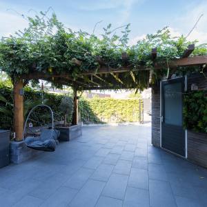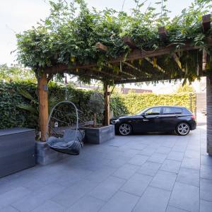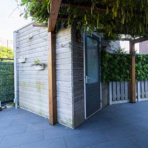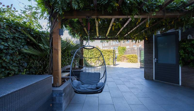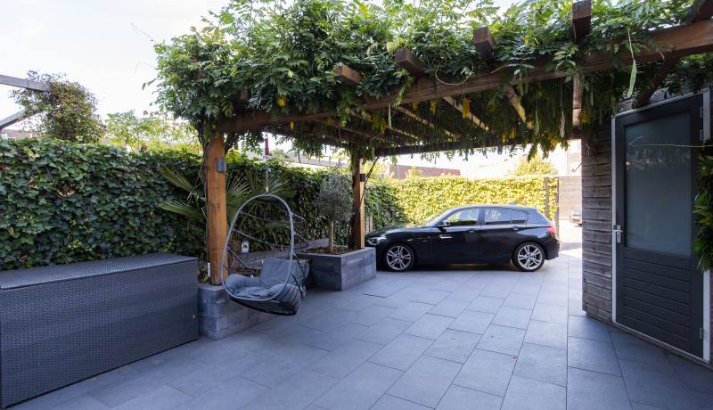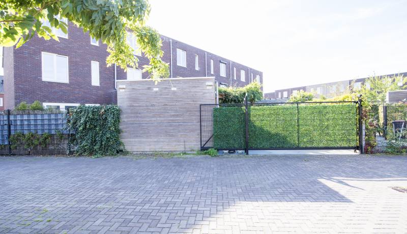 De achtertuin ligt gunstig op de zon en beschikt over een vrijstaande houten berging van 5 m² perfect voor fietsen of tuingereedschap, én een achterom. Tevens is de tuin voorzien van een elektrisch hek.
