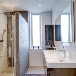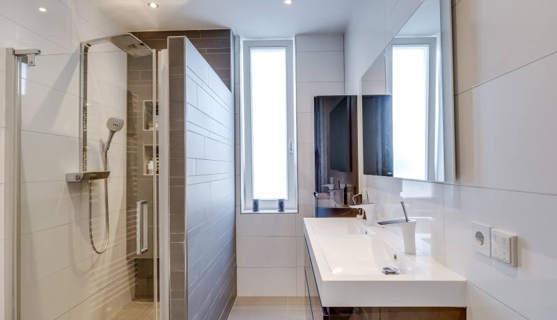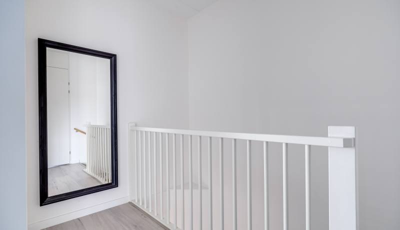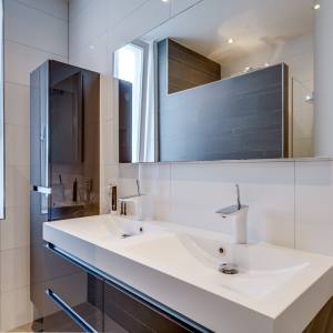 Op de eerste verdieping vind je twee ruime slaapkamers en een moderne badkamer met inloopdouche, dubbele wastafelmeubel en een tweede toilet.