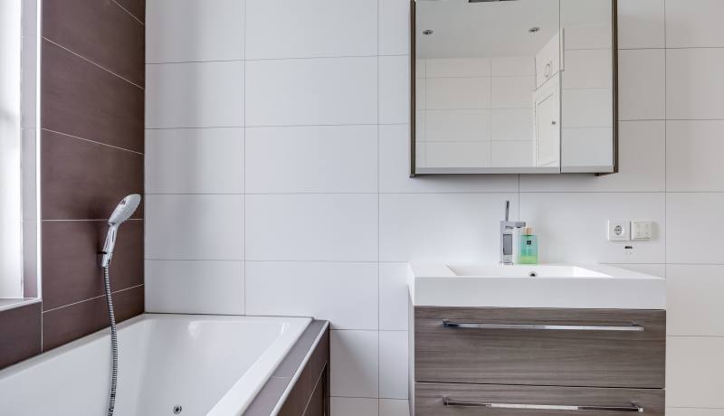 - Tweede verdieping: twee ruime slaapkamers (waarvan één met dakkapel en wasmachine-/drogeraansluiting), tweede badkamer met bubbelbad, wastafelmeubel en derde toilet.