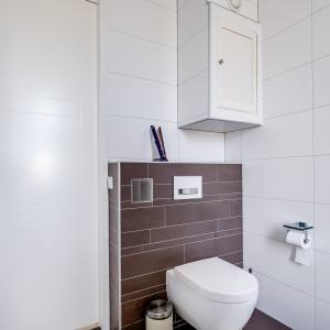 The second floor offers two more large bedrooms, with the front room featuring a dormer window. This room also houses the connections for the washing machine and dryer. In addition, there’s a second bathroom on this floor with a bathtub, third toilet, and washbasin — ideal for a family or guests.