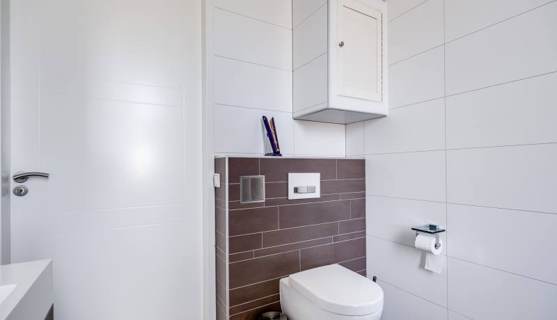 On the first floor, you’ll find two spacious bedrooms and a modern bathroom with a walk-in shower, double washbasin, and a second toilet.