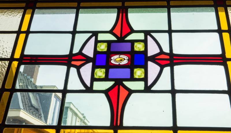 - Herkenbare gevel vlakbij de bloemenkiosk.