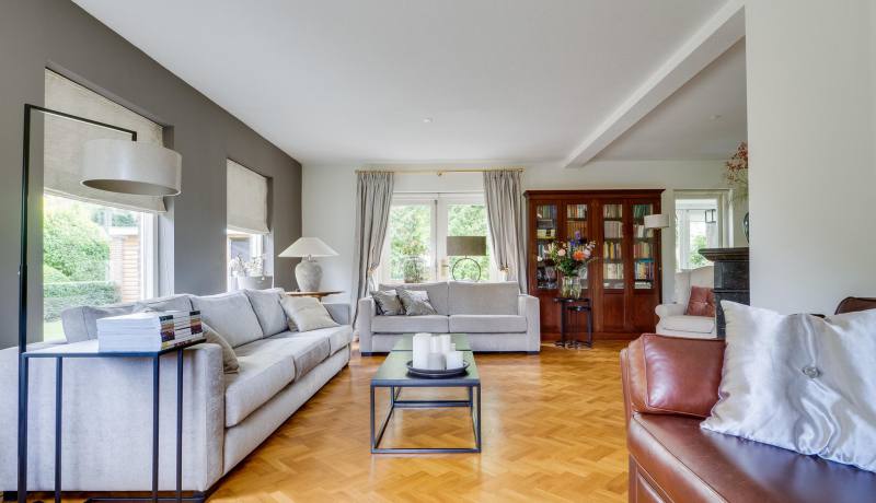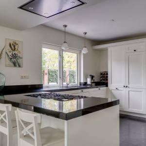 Bij binnenkomst in de woning ervaar je gelijk de ruimte; de woonkamer is, door de grote raampartijen en openslaande deuren, een ruime en lichte kamer. In de woonkamer ligt een prachtige eiken houten visgraat vloer én is er een gezellige gashaard aanwezig. De open keuken is voorzien van diverse inbouwapparatuur en aangrenzend bevindt zich de eetkamer. Een aantal jaren geleden (2016) is er een serre aangebouwd waar nu de eetkamer gesitueerd is. Vanuit hier heb je prachtig zicht op de beschutte en zeer goed onderhouden tuin. In 2017 is er in de tuin een luxe en strakke overkapping gebouwd met mooie stalen schuifdeuren.