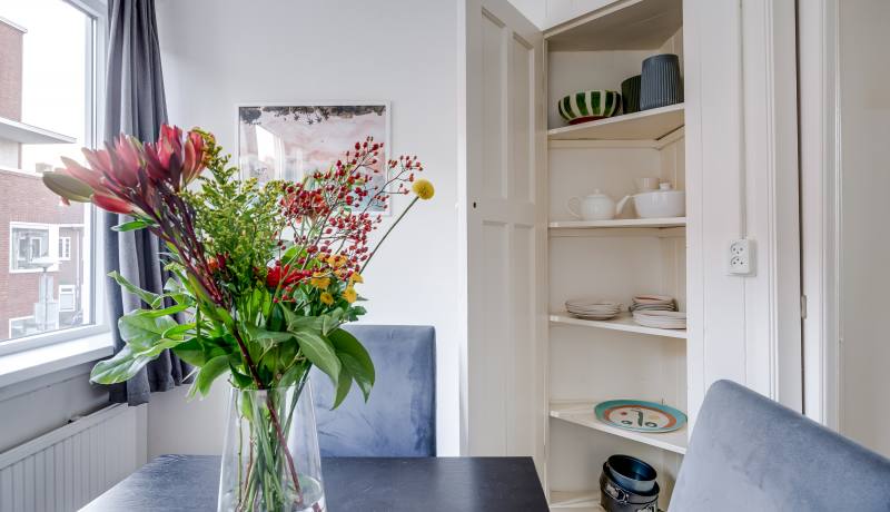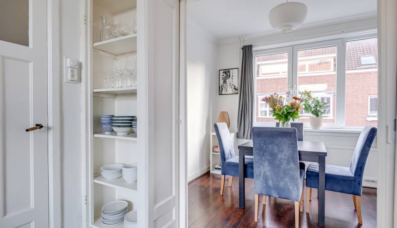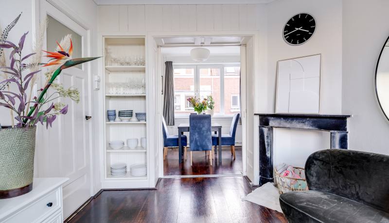 Welcome to Bolksbeekstraat 67 BS, a particularly charming and well-maintained upper-level apartment from 1926, located in the heart of the beloved Dichterswijk. With an impressive 78.8 m² of living space and a generous 14.4 m² roof terrace, this home beautifully combines character and comfort. Authentic features such as stained-glass windows, high ceilings of approximately 2.7 meters, panel doors, wooden floors, and a natural stone mantelpiece enhance the warm and unique atmosphere of the home.