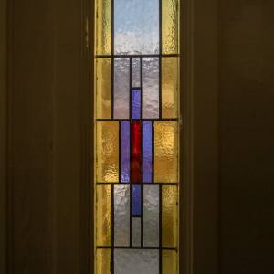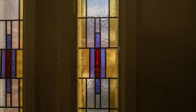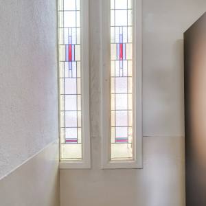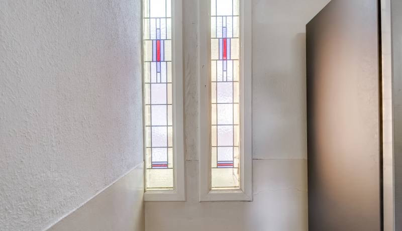 - Rich authentic features including stained-glass windows, natural stone mantelpiece, original en-suite layout, panel doors, wooden floors, and high ceilings of approximately 2.7 meters