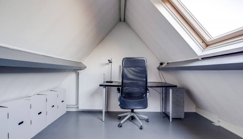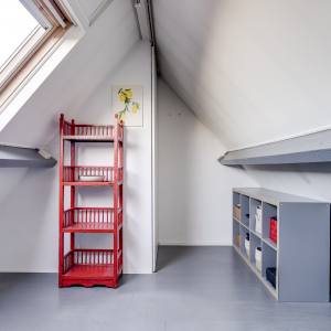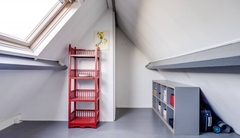 De derde verdieping biedt nog een praktische zolderruimte, ideaal te gebruiken als logeerkamer, hobbyruimte of werkplek.