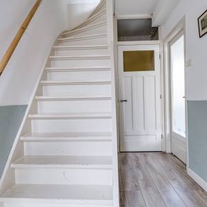 - Tweede verdieping: Overloop, twee slaapkamers (waarvan één met dakkapel), kast met wasmachineaansluiting, b-badkamer met ligbad, douche en wastafel.