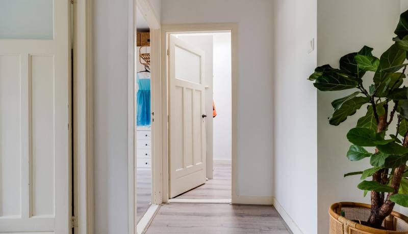 Spacious landing, two nice bedrooms at the front of the house. A pleasant intermediate room (equipped with a skylight) in the middle of this floor. At the rear you will find the most spacious bedroom with a closet. The bathroom has a sink and a walk-in shower, and the central heating (2013) and washing machine are also located here. From the bathroom there is access to the sunny roof terrace. All rooms on this living floor also have a pleasant ceiling height of approximately 2.8 meters.