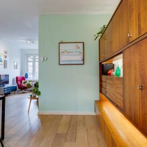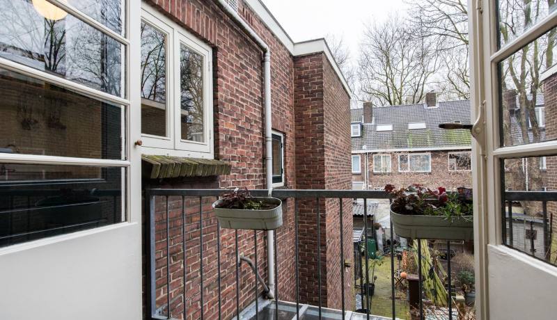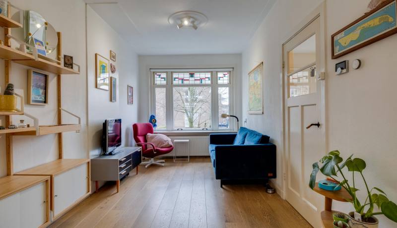 A spacious 1930s upstairs apartment (82 m2 living space) in the quiet De Savornin Lohmanstraat. At both the front and rear there are views of lots of greenery, at the front of the large garden of the former National Agricultural School and at the rear of the green gardens of the rear neighbors with tall trees behind them. A nice location with amenities such as shops and restaurants (Amsterdamsestraatweg and the Plantage), schools, childcare, Juliana Park, public transport (various bus lines and train) and arterial roads a short distance away. There is free parking in front of the door. The house has three bedrooms and is equipped with original details such as stained glass windows, a marble mantelpiece, high ceilings and original panel doors. The apartment also has a beautiful wooden floor.