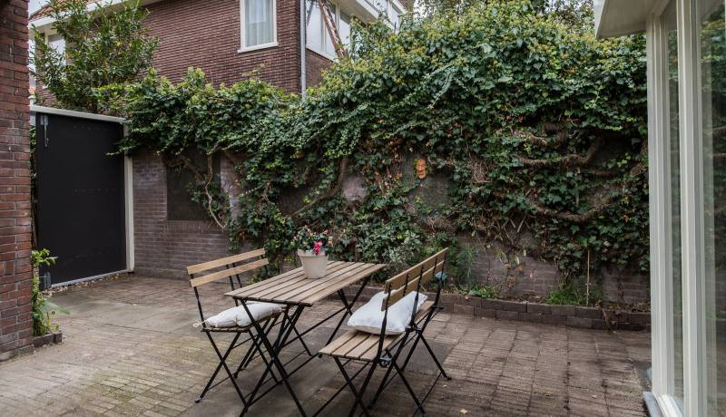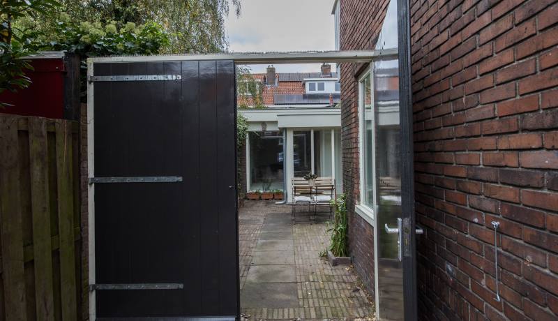 De woning beschikt over een fraai aangelegde tuin met meerdere zitplekjes, waar je de hele dag door van de zon kunt genieten. De droogloop zorgt voor een praktische verbinding tussen keuken en buitenruimte, terwijl de patio een knusse, besloten plek vormt met veel privacy, ideaal voor een kop koffie in de ochtendzon of een borrel op zomeravonden. Daarnaast is er aan de voorzijde een ruime voortuin, die niet alleen zorgt voor extra afstand tot de straat en veel groen, maar ook praktisch is ingericht met ruimte voor het stallen van fietsen of het creëren van een gezellig zitje. De tuin is grotendeels bestraat, onderhoudsvriendelijk en biedt volop rust midden in de stad.