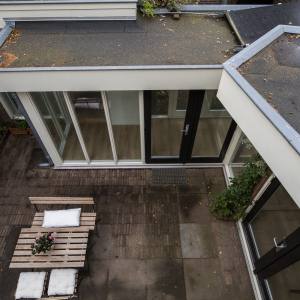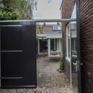 At the front, the spacious front garden not only adds greenery and distance from the street but also offers room to park bicycles or create an extra sitting area. The garden is mostly paved, low-maintenance, and wonderfully peaceful, an oasis in the middle of the city.