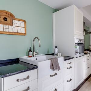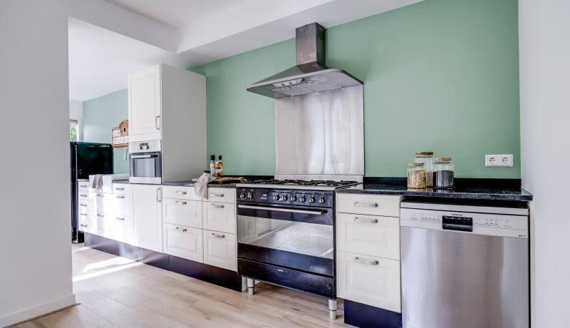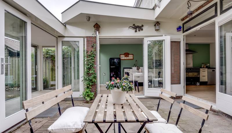 Aan de achterzijde ligt de nette open keuken, voorzien van diverse inbouwapparatuur, veel kastruimte en een prettig werkblad. De keuken oogt verzorgd en netjes, ideaal voor wie graag kookt. Via de keuken bereik je de droogloop, die toegang geeft tot de zonnige achtertuinen én tevens toegang geeft tot de volledig geïsoleerde voormalige garage c.q. bergruimte welke in 2024 is vernieuwd en voorzien van (isolatie, leidingwerk, verwarming, betonnen vloer) én wasruimte.
