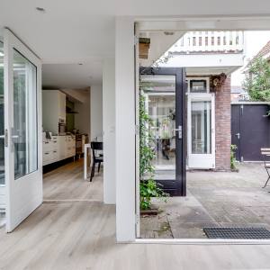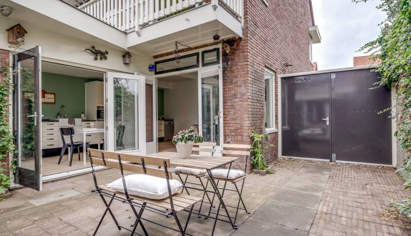 De woning beschikt over een 2-tal fraai aangelegde zonnige achtertuinen waar je praktisch de gehele dag door van de zon kunt genieten. Daarnaast is er aan de voorzijde een ruime voortuin, die niet alleen zorgt voor extra afstand tot de straat en veel groen, maar ook praktisch is ingericht met ruimte voor het stallen van fietsen of het creëren van een gezellig zitje. De tuin is grotendeels bestraat, onderhoudsvriendelijk en biedt volop rust midden in de stad.