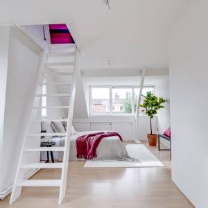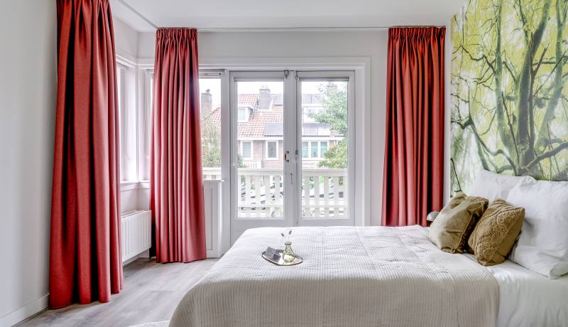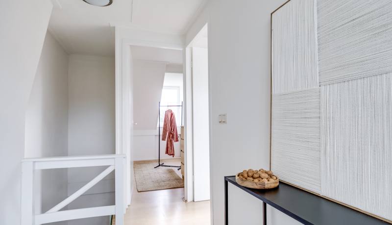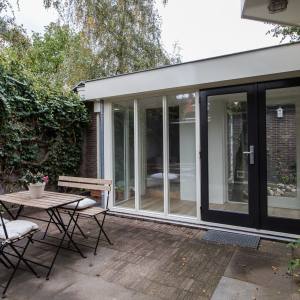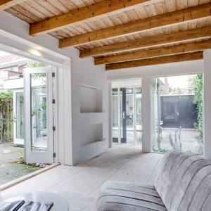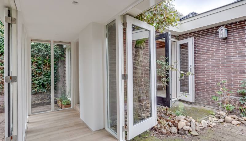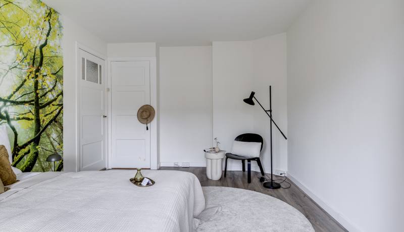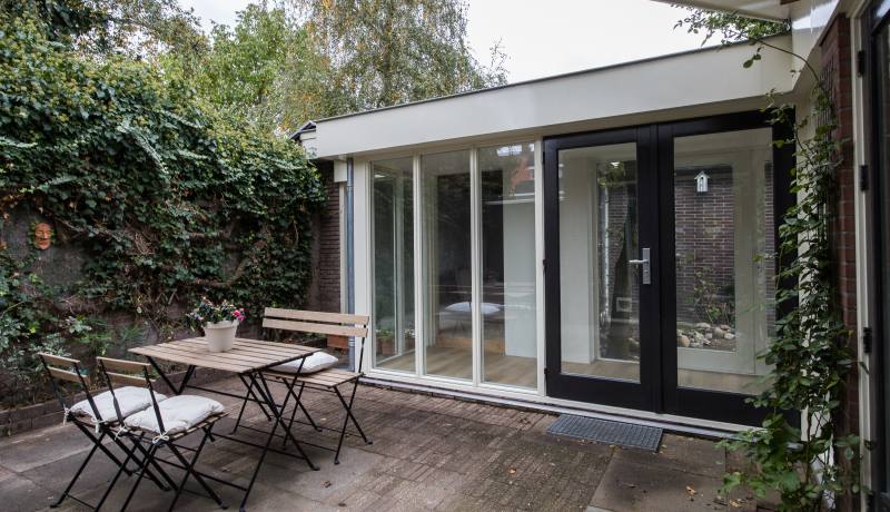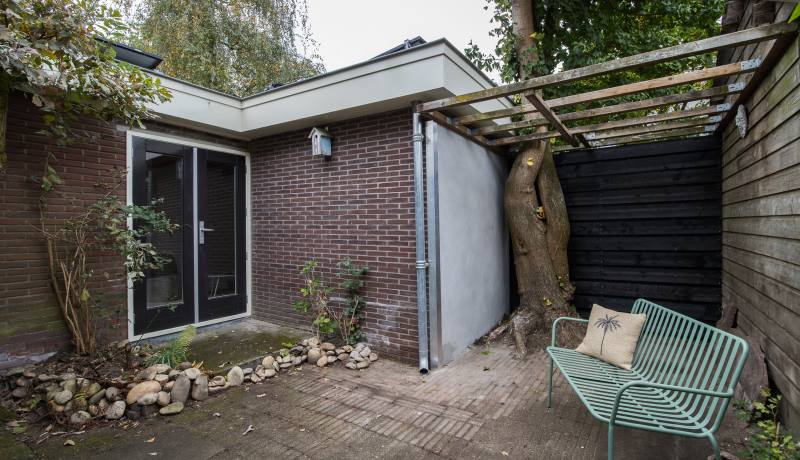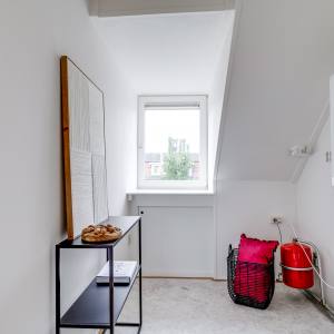 At the front, there is also a spacious front garden that provides extra distance from the street and a pleasant green outlook. It also offers practical space for bicycle storage or a cosy seating area. The garden is largely paved, low-maintenance, and offers a peaceful retreat in the middle of the city.