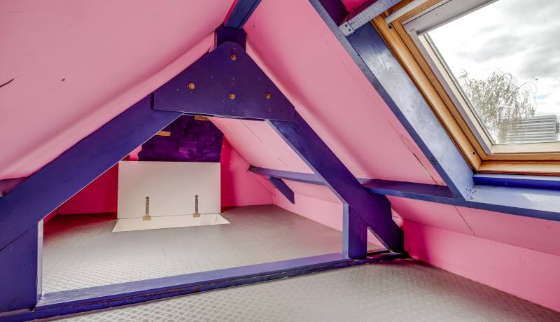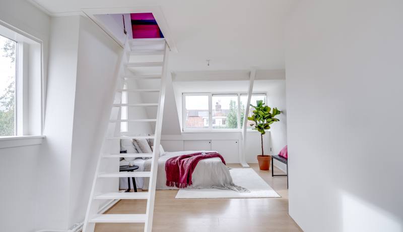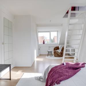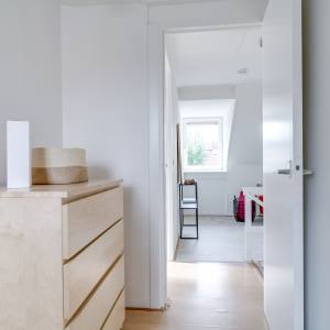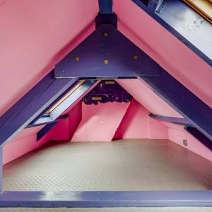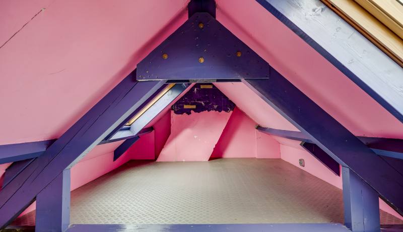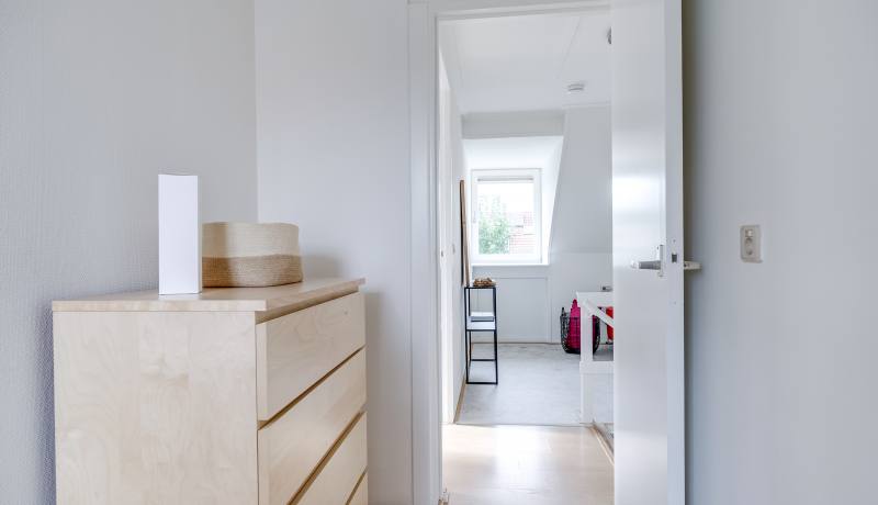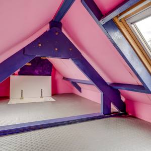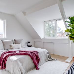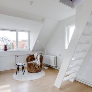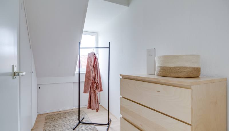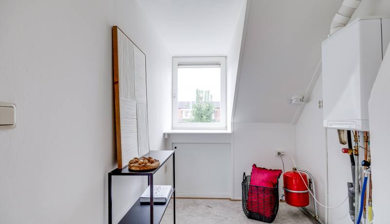 The second floor features a landing with a washing machine connection and two additional bedrooms. The largest room is generous in size and has dormer windows on both sides, bringing in lots of natural light. From this room, there is also access to the attic, providing extra storage space. If desired, this spacious room could be divided to create an additional bedroom.