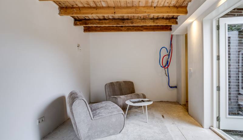 - Nieuwe geïsoleerde broodjes-betonvloer (2025) onder woonkamer