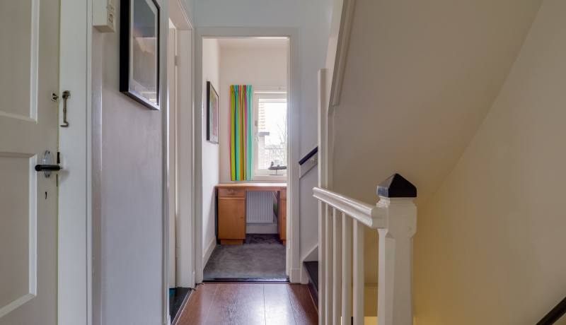Ruime overloop met wasmachine- en drogeropstelling, CV-combi ketel. 2 ruime en lichte slaapkamers, dit komt met name door de dakvensters en door de dakkapellen.