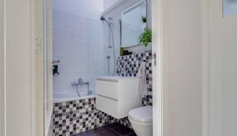 Overloop met vaste kast, drie prima slaapkamers en frisse moderne badkamer voorzien van 2e toilet, ligbad/douche en wastafel.