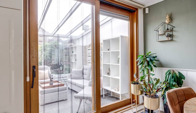 - Schuifpui naar de tuin, serre en blokhut geplaatst