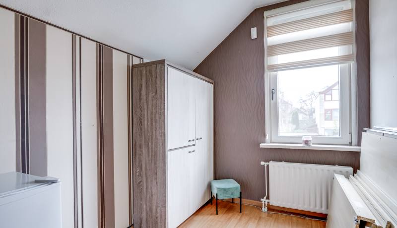 On the first floor you will find three well-sized bedrooms, perfect as bedrooms, a home office or children’s rooms. The bathroom is fully equipped with a shower and washbasin. A separate staircase leads via a hatch to the spacious attic, ideal for extra storage.