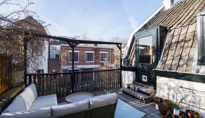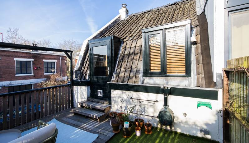 Op de eerste verdieping vind je twee ruime slaapkamers. De badkamer is modern en met oog voor detail recent vernieuwd, waardoor je hier zonder klussen kunt intrekken. Via de slaapkamer heb je ook toegang tot het dakterras, dé plek waar je van voorjaar tot ver in het najaar heerlijk buiten zit. Of je nu wilt ontbijten in de zon, borrelen met vrienden of gewoon ontspannen met een boek; dit terras is echt een verlengstuk van je woning.