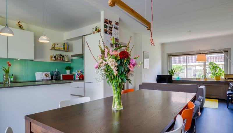 Aan de achterzijde is er een ruime uitbouw gerealiseerd waardoor er een mooie woon-/eetkeuken is ontstaan.