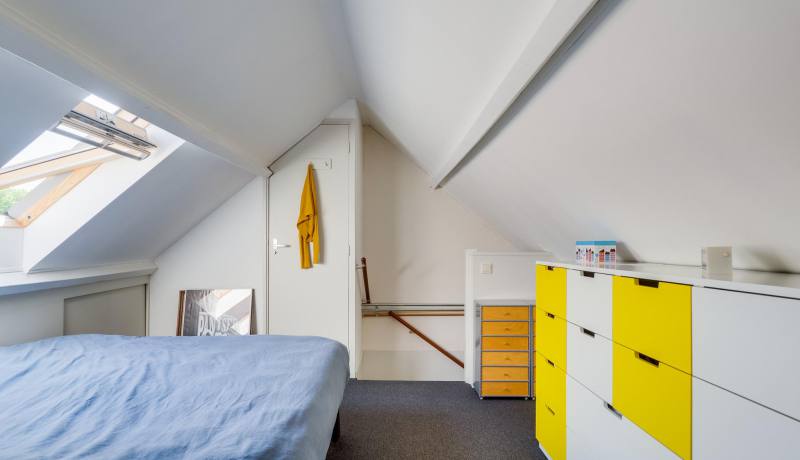 Derde slaapkamer met veel bergruimte en toegang de C.V.- ruimte