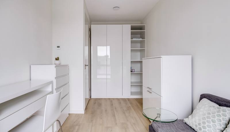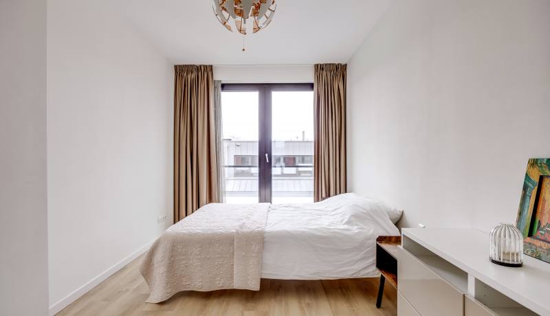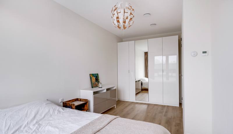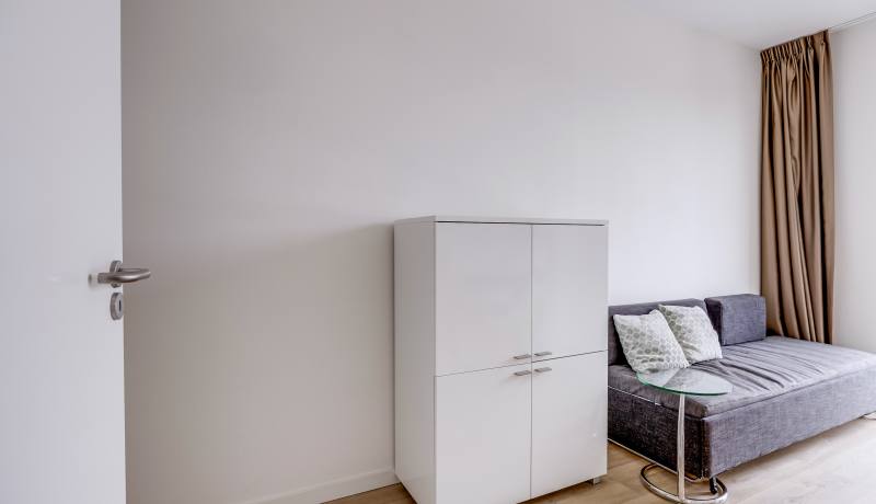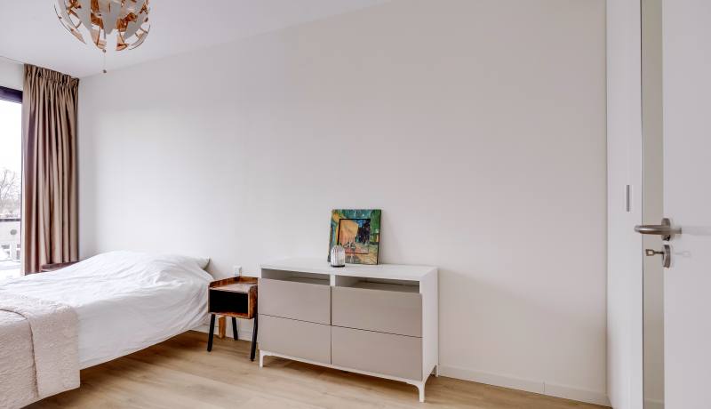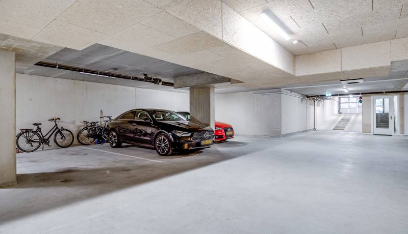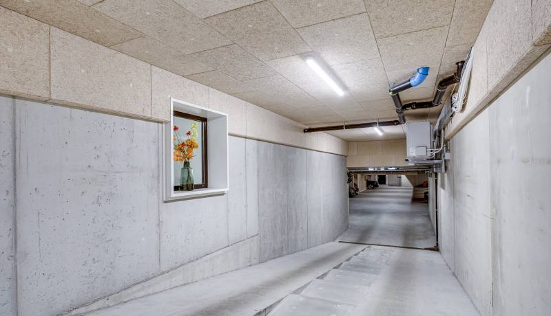 Neat and well-maintained communal entrance with access to the stairwell, elevator and the underground parking garage. The apartment also includes a parking space in the garage, which is available for purchase separately at an additional cost. The apartment entrance leads into a central hallway providing access to all rooms. The apartment has a practical and logical layout and is fully equipped with underfloor heating and solar energy for individual use per apartment, creating a pleasant and comfortable living environment. On the right-hand side of the apartment are two comfortable bedrooms, quietly located and of a good size.