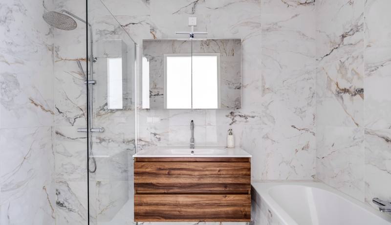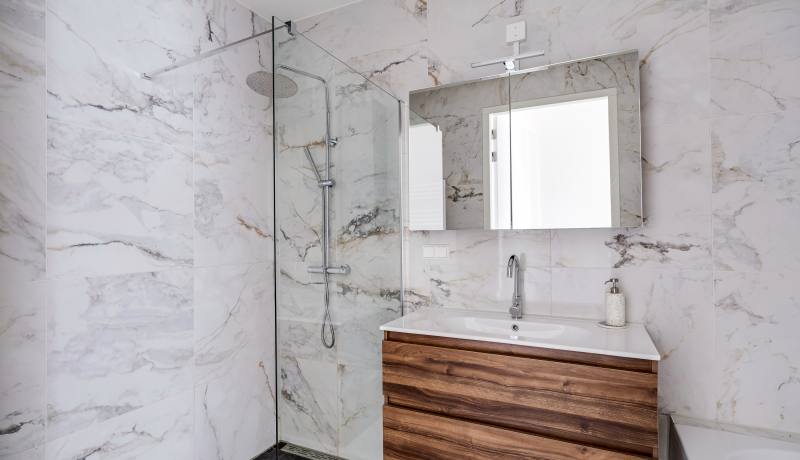 - Fourth floor: entrance, central hallway, two bedrooms, living room with dining area and open kitchen, balcony, storage room with washing machine connection, separate toilet and bathroom with shower, bathtub and washbasin.