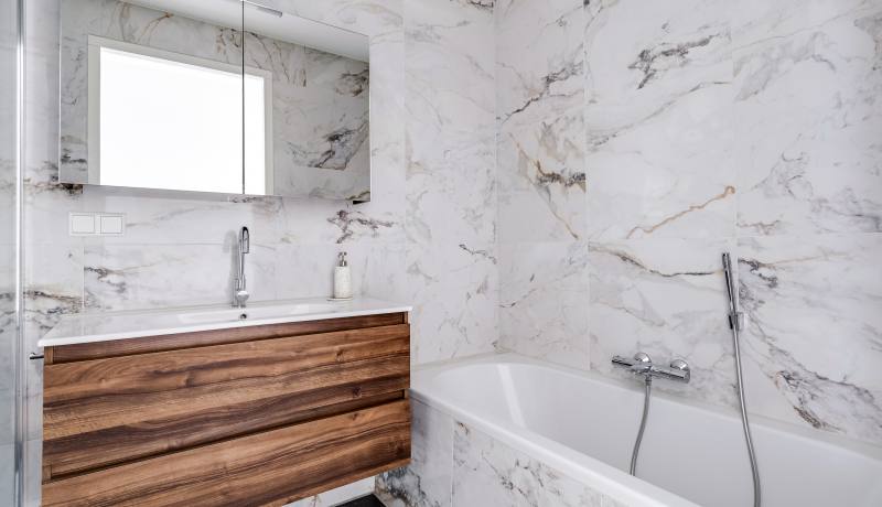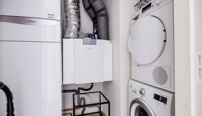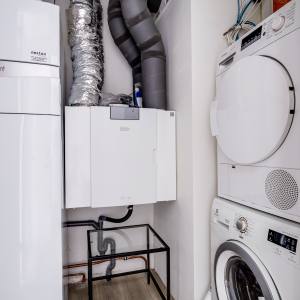 The kitchen (2023) has a sleek design and is fitted with modern built-in appliances, perfectly matching the contemporary character of the apartment. Centrally located within the apartment are a practical internal storage room with washing machine connection, a separate toilet and a modern, luxurious bathroom equipped with a shower, bathtub and washbasin. Everything has been finished with great care and attention to detail and feels fresh and new.