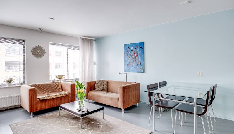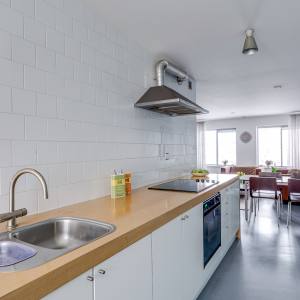 Via the shared entrance, you reach the apartment on the third floor. Upon entering, you step into a neat hallway that provides access to all rooms. The living room is bright and generously proportioned, offering ample space for both a comfortable seating area and a cosy dining area. Large windows ensure plenty of natural light and create an open and pleasant atmosphere. The kitchen is practically designed and equipped with various built-in appliances. The apartment features two well-sized bedrooms, ideal as a main bedroom, home office or guest room. The bathroom is neatly finished and equipped with a shower and washbasin. There is also a separate toilet. Both bedrooms provide access to a balcony, offering a pleasant outdoor space to enjoy a cup of coffee or a quiet moment outside.