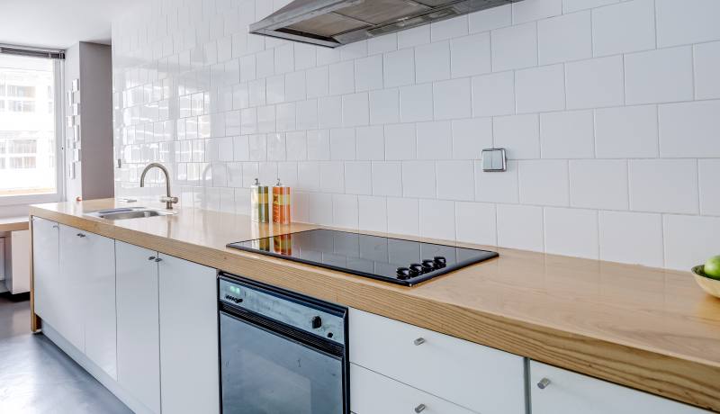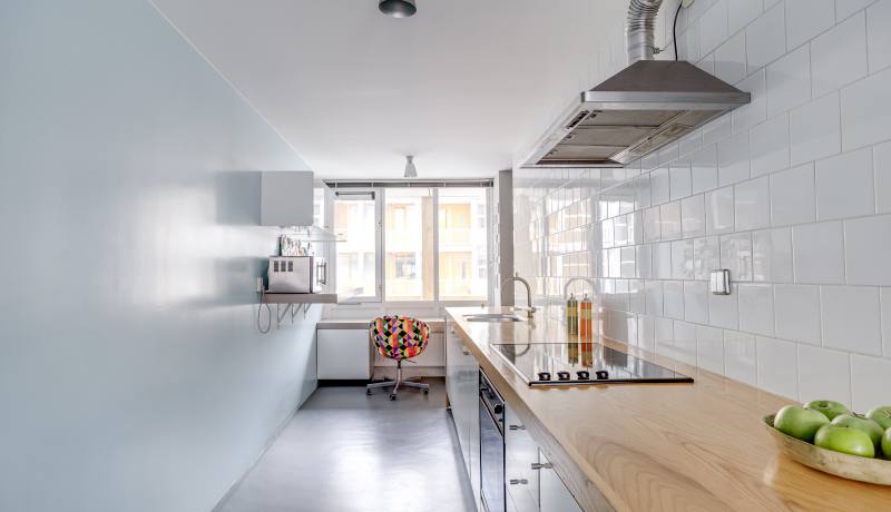 - Derde verdieping: hal, toilet, woonkamer, keuken met inbouwapparatuur, twee slaapkamers met allebei toegang tot een balkon, badkamer met douche en wastafel.