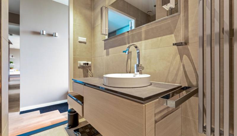 Door de hal vanuit de woonkamer loop je door naar de tweede slaapkamer welke nu in gebruik is als master bedroom en voorzien is van een luxe inloopkast. Naast deze tweede slaapkamer ligt de prachtig afgewerkte badkamer welke is voorzien van ligbad, inloopdouche, zwevend toilet, mooi badkamermeubel én designradiator.