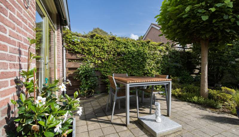 Upon entering you enter the hall with toilet and meter cupboard. This gives access to the spacious living room. The living room has beautiful light thanks to the windows at the front and patio doors at the back. The room offers enough space for a cozy sitting area and dining area. The kitchen, dating from 2001, is fully equipped and functions properly. The fridge-freezer combination was renewed in 2020. From the living room you can walk through French doors into the sunny, beautifully landscaped backyard. Here you can relax wonderfully. The garden has a practical stone shed and a back entrance.
