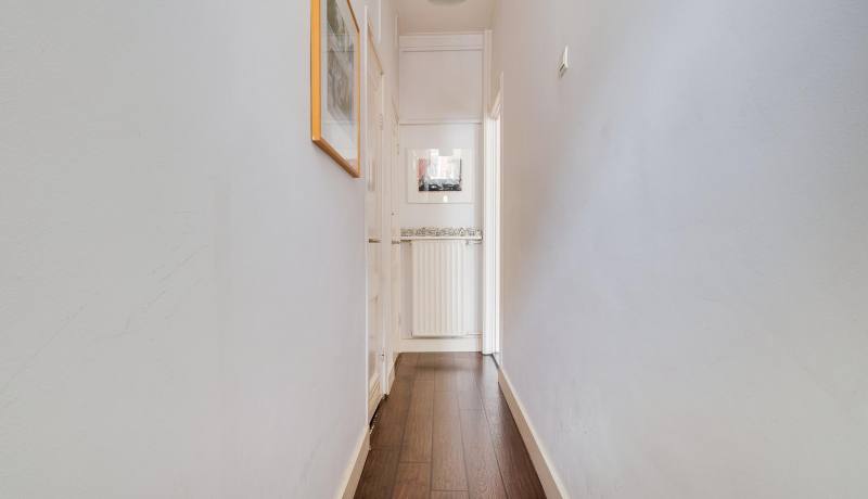 Via de open keuken kom je uit aan de achterzijde van de woning waar zich twee slaapkamers bevinden. Slaapkamer 1 is voorzien van een grote vaste kastenwand over de hele breedte. Slaapkamer 2 bevindt zich aan de overzijde van de gang.