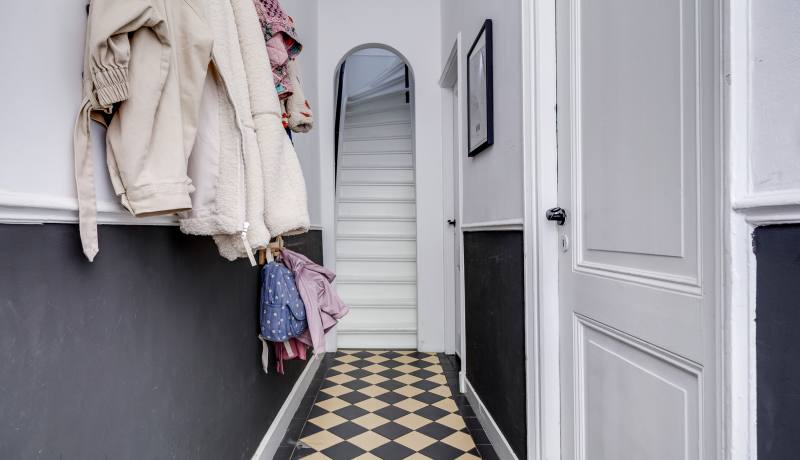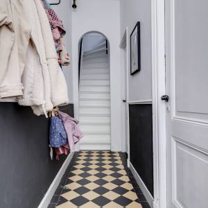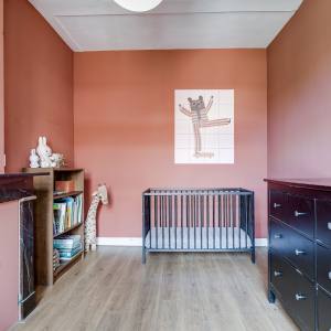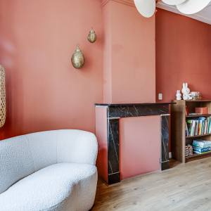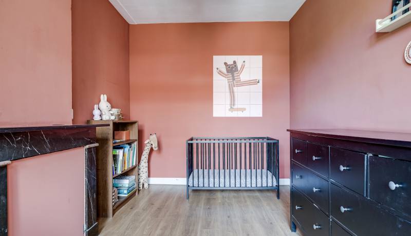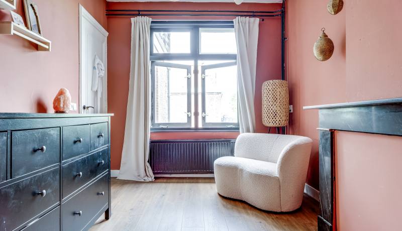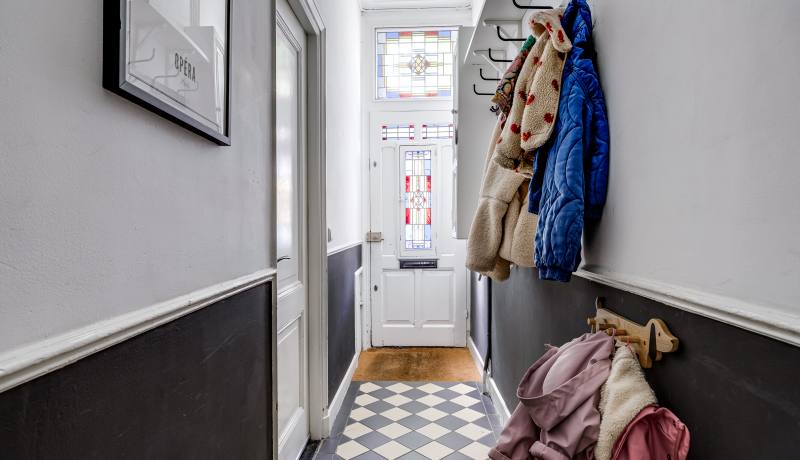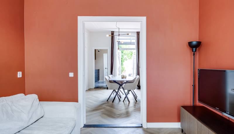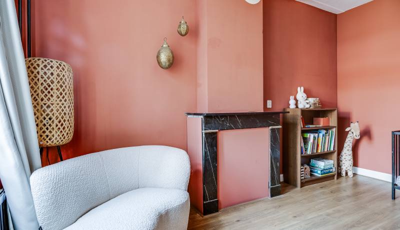 De woning verwelkomt je met een klassieke voordeur met glas-in-looddetails. Binnen komt de sfeer direct tot leven in de lichte woonkamer met prachtige kamer-en-suite-deuren, hoge plafonds met originele ornamenten en een visgraatvloer. De combinatie van authentiek en eigentijds maakt het huis karaktervol én comfortabel.