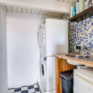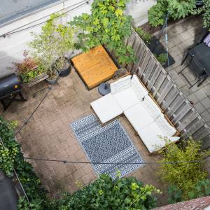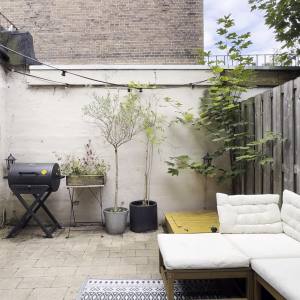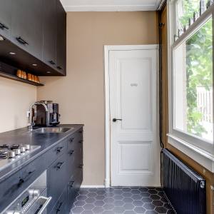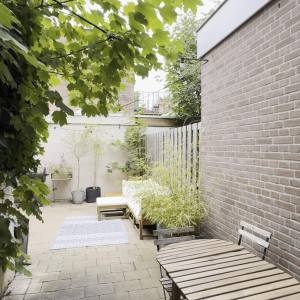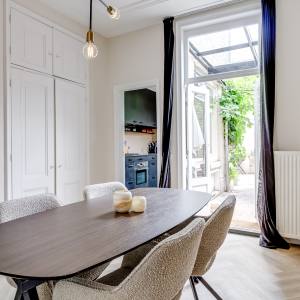 At the rear, you’ll find the kitchen (2016), a wonderful place to cook and enjoy meals in the adjoining dining area. Through the French doors, you step into the charming city garden, ideal for a peaceful breakfast in the morning or relaxing in the afternoon and evening sun. Behind the kitchen is a toilet.