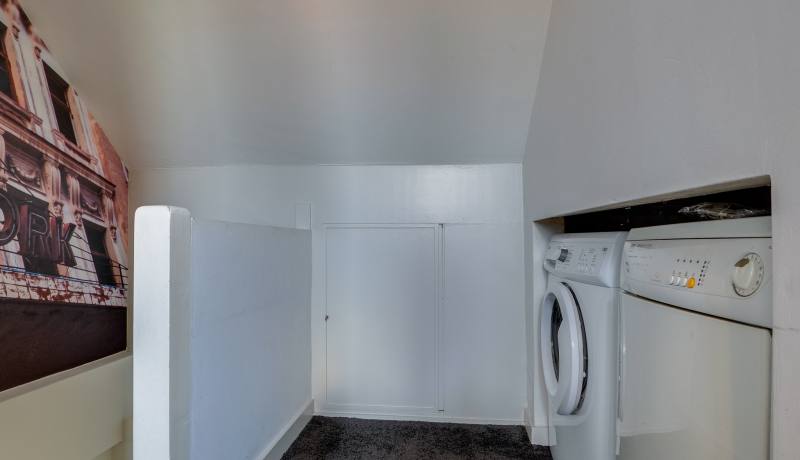 Tweede verdieping: overloop, berging, wasmachine- en drogeropstelling, 2e moderne badkamer met douche, 2e toilet, dubbele wastafel. Grote 4e slaapkamer met dakkapel en berging.