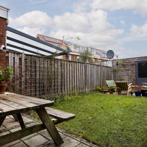 The backyard is wonderfully deep and offers plenty of space for lounging, gardening, playing, or simply enjoying a long summer day. At the back, there is a large storage shed, perfect for bicycles and extra storage. The garden has rear access shared with four neighbours, closed off with a gate at the street side.