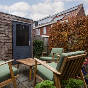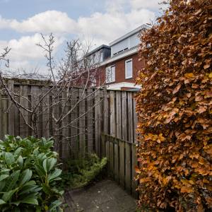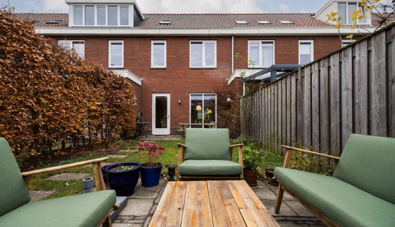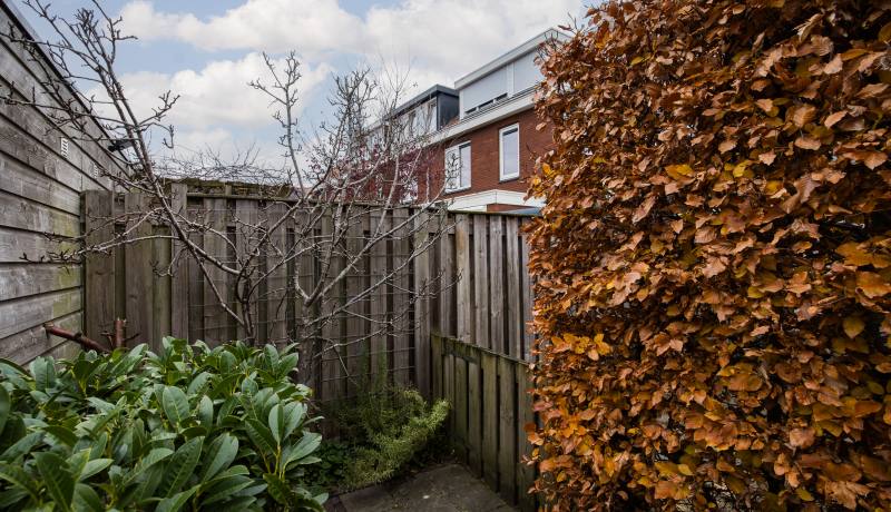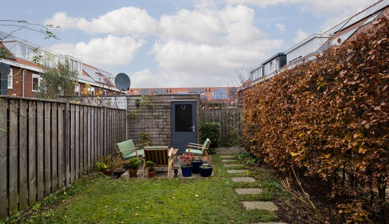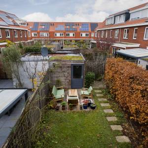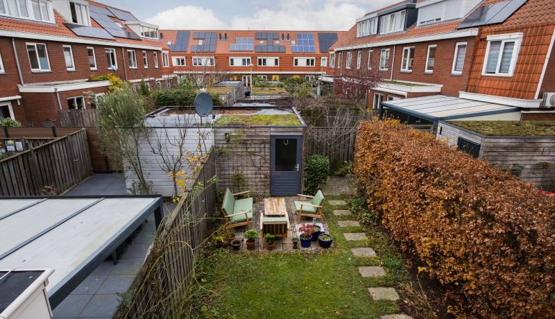 De achtertuin is heerlijk diep en biedt volop ruimte om te loungen, tuinieren, spelen of te genieten van een lange zomerdag. Achterin staat een ruime berging, ideaal voor fietsen en opslag. De achtertuin beschikt over een achterom die gedeeld wordt met 4 buren en aan de straatzijde is afgesloten met een hek.