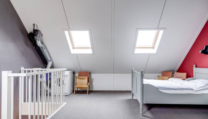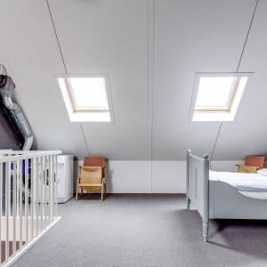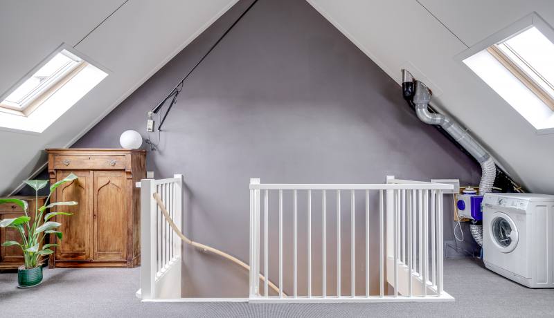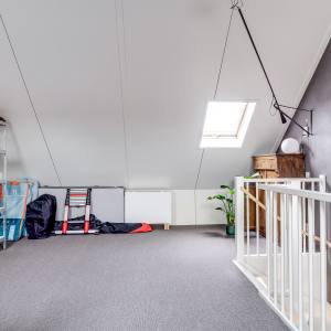 - Tweede verdieping: ruime zolderverdieping in gebruik als multifunctionele ruimte met wasmachineaansluiting.