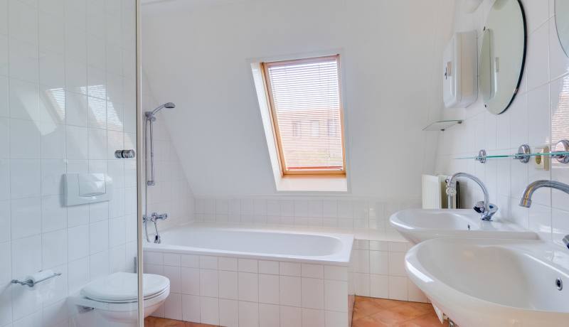 Op de tweede verdieping ligt de vierde ruime slaapkamer en een grote overloop met nog een aansluiting voor de wasmachine en droger.