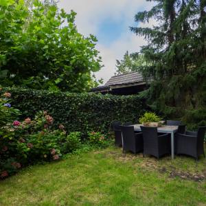 De voor- en achtertuin zijn met zorg aangelegd en onderhouden. De voortuin biedt de mogelijkheid tot het parkeren van 2 auto's op eigen terrein. De vrij gelegen achtertuin met volop privacy is gelegen op het noordoosten en heeft vrij zicht, vanwege de lengte van de tuin is er de hele dag zon. Verder beschikt de tuin nog over een vrijstaande schuur van 4,6 bij 3 meter en is tevens voorzien van gas/licht en een wastafel (ook warm water aansluiting).