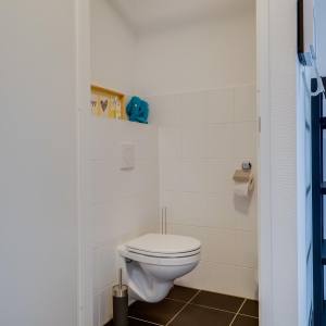 Terug in de hal heb je een apart toilet. Tegenover het toilet heb je een handige aparte berging voor extra opslag.