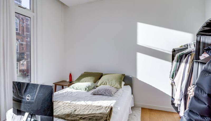 - Derde verdieping: Entree, hal met separaat toilet, royale woonkamer met open keuken en erker, twee slaapkamers, inpandige kast met wasmachineaansluiting en badkamer voorzien van ligbad, douche, wastafel en toilet.