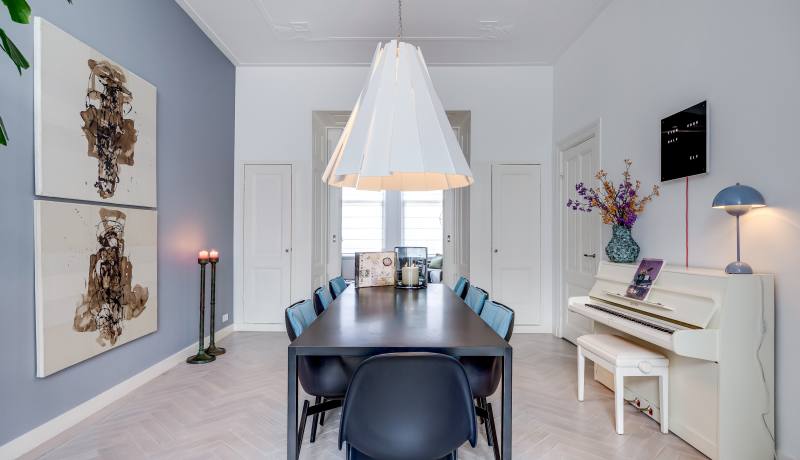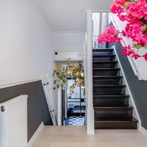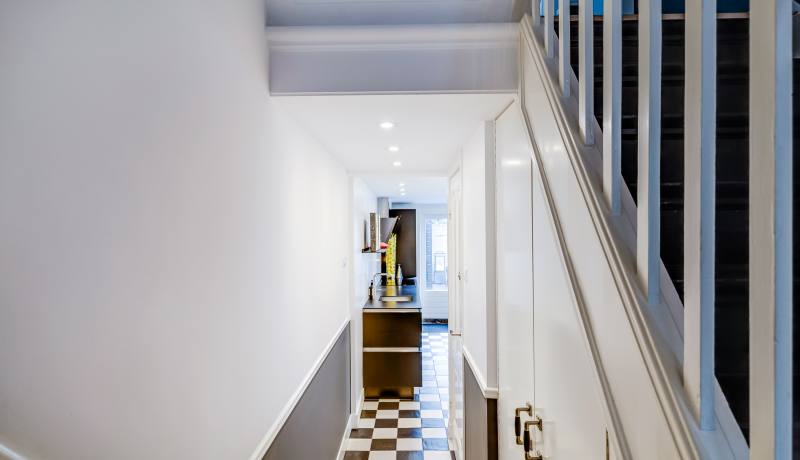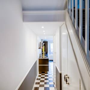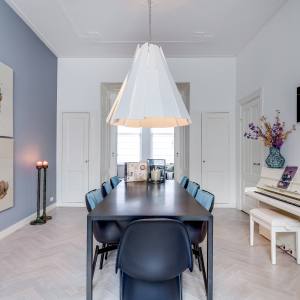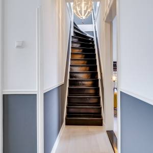 Je stapt binnen in de ruime en statige entree/hal, meteen een prachtige binnenkomer met veel licht en ruimte. Aan de voorzijde bevindt zich de woonkamer, een sfeervolle en lichte ruimte die perfect is als zitkamer of lounge. Aan de achterzijde ligt de eetkamer met aansluitende keuken. Deze verdieping voelt door de lengte, de hoge plafonds en de grote ramen ruim en elegant. Vanuit de eetkamer én keuken heb je directe toegang tot de achtertuin, wat deze plek ideaal maakt voor lange diners, spelende kinderen of gezellige borrels. Op deze verdieping vind je bovendien een separaat toilet en de trapopgang naar boven.