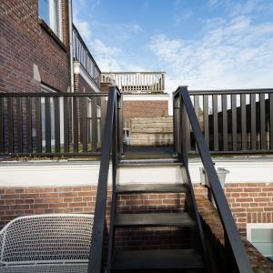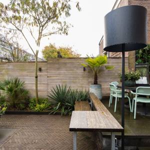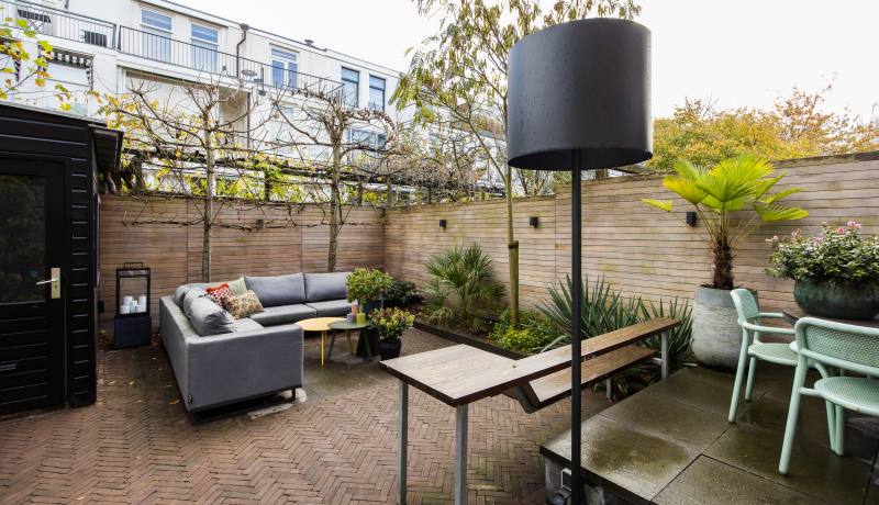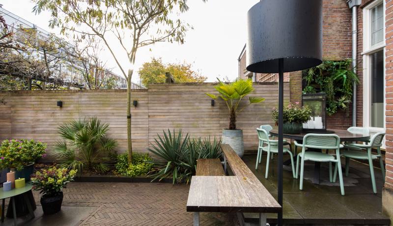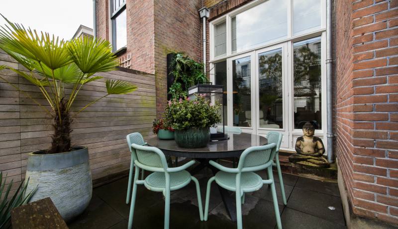 - Buitenruimte: Diepe, groene stadstuin aan de achterzijde, groot dakterras (20,8 m²) toegankelijk vanaf de eerste verdieping, externe berging (3,1 m²).